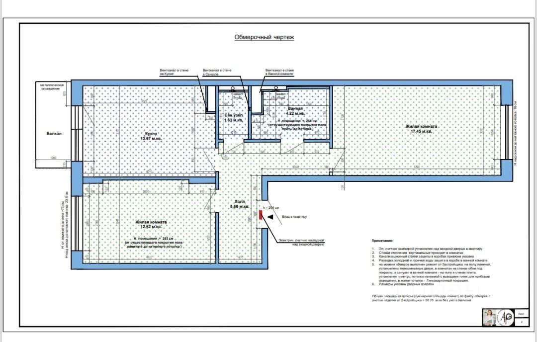 Продается просторная двухкомнатная квартира в современном доме, построенном в 2023 году. Общая площадь квартиры составляет 58.5 кв. м, жилая площадь — 30.5 кв. м, а кухня — 13.67 кв. м. Квартира расположена на 5 этаже 17-этажного дома. Высота потолков — 2.63 метра. Из окон открывается вид на улицу, что обеспечивает много естественного света.