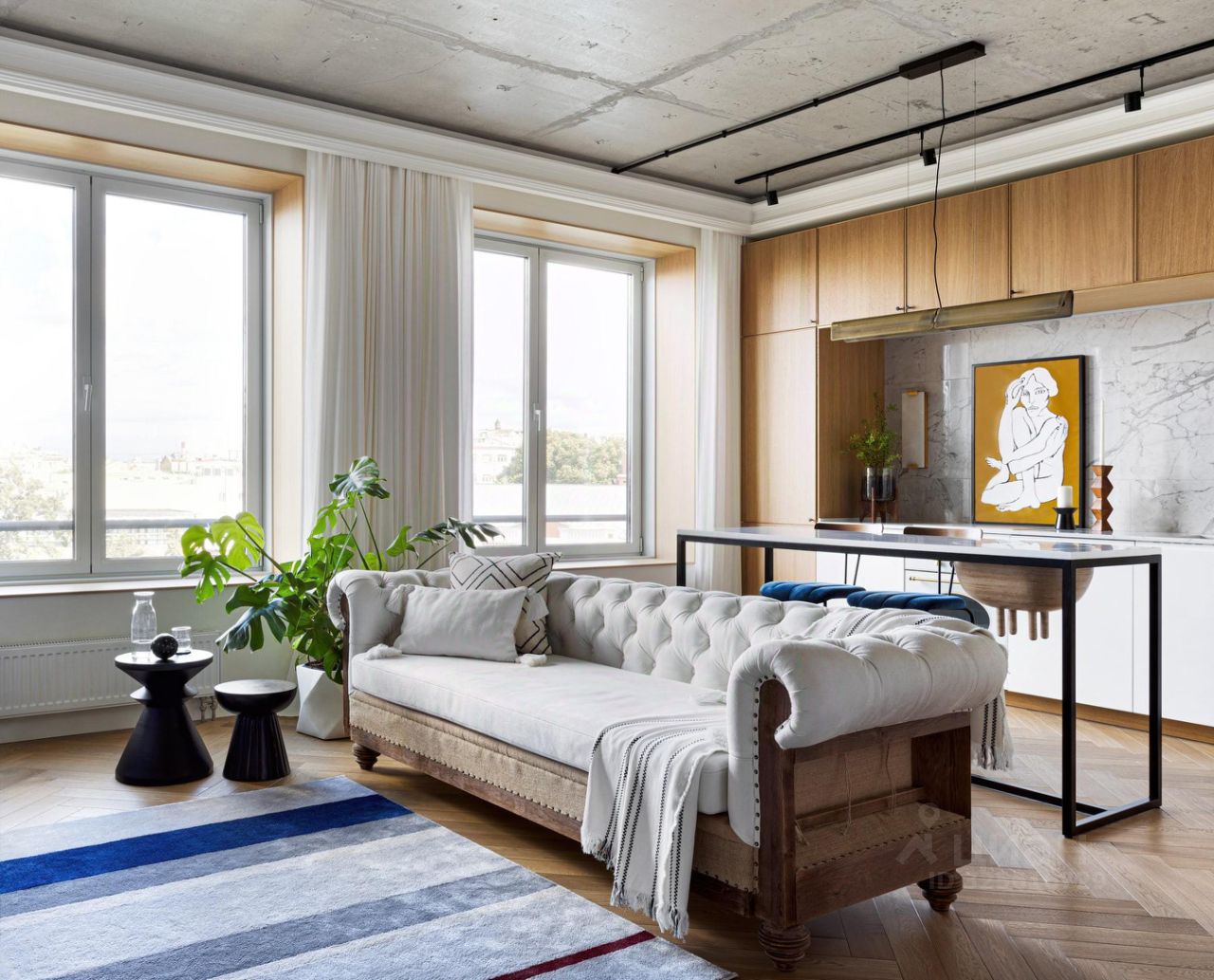 На срок от 8 мес. В ЖК Басманный 5 сдаю прекрасно декорированную и полностью укомплектованную мебелью и бытовой техникой просторную светлую студию со спальной зоной. Новый современный дом с подземным паркингом и охраняемой благоустроенной территорией в историческом центре. Общая площадь 44кв.м., 5 эт. Высота потолка 3м, большие окна, качественные отделочные материалы, комфортная планировка. Большое кол-во шкафов и мест для хранения. Кухня укомплектована полноразмерной посудомоечной машиной, полноразмерной стиральной машиной с сушкой, духовкой, встроенным холодильником и варочной поверхностью. На случай отключения горячей воды предусмотрен бойлер. Кондиционер установлен. Окна ориентированы на восток/юго-восток, солнце в первой половине дня. Вид из окон в тихий двор.