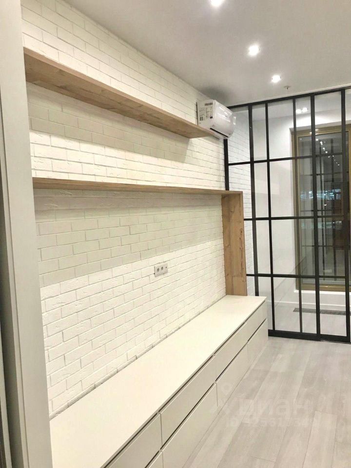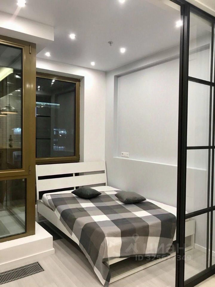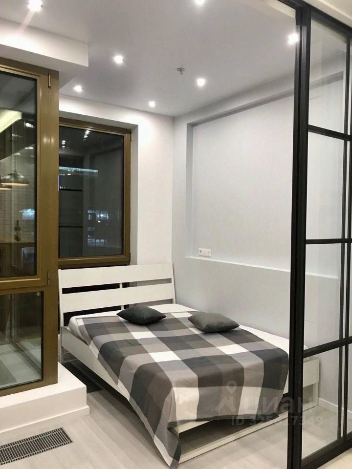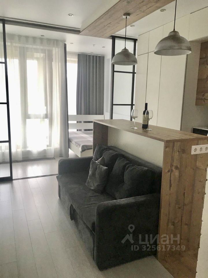 Предлагается в аренду светлая, стильная, современная квартира-студия. Одни из ЛУЧШИХ апартаментов, все продумано до мелочей, в ЖК ''Лайнер'' Ходынский бульвар 2, площадью 32,4 кв.м. Выполнено ЗОНИРОВАНИЕ с разделением раздвижными дверьми на спальню и кухню-гостиную для комфортного проживания: