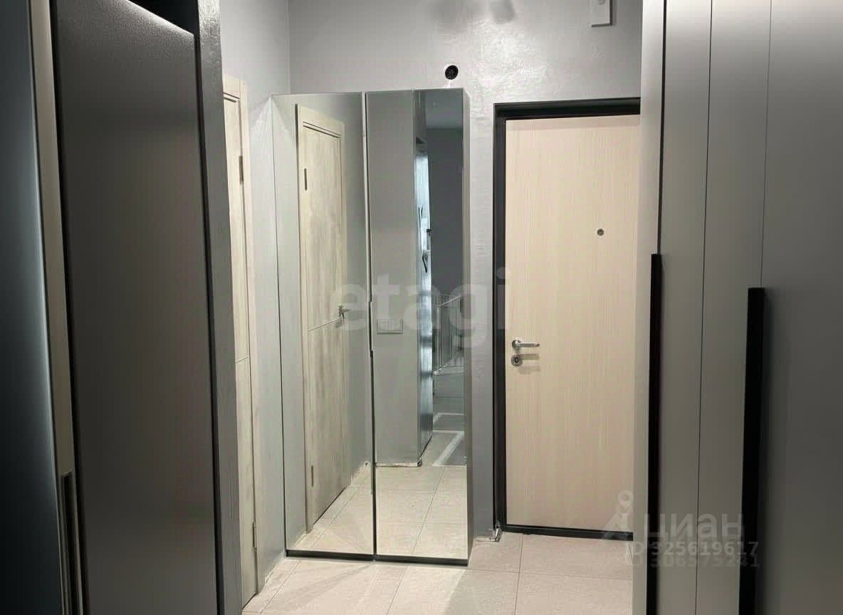 Большой встроенный шкаф-купе длиной 3 метра с системой хранения и встроенными розетками. В прихожей обустроены дополнительные места для хранения.