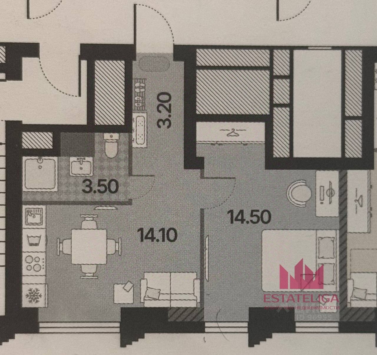 Технические параметры: Общая площадь: 35.3 м². Жилая зона: 14.5 м² (универсальное пространство для сна и отдыха). Кухонная ниша: м² (достаточно для компактной мебели и техники). Санузел: совмещённый (эргономичная планировка). Высота потолков: 3.20 м (добавляет воздуха и света). Этаж: 12 из 58 (оптимальная высота: тишина + хороший вид). Отделка: без отделки (возможность создать интерьер под себя).