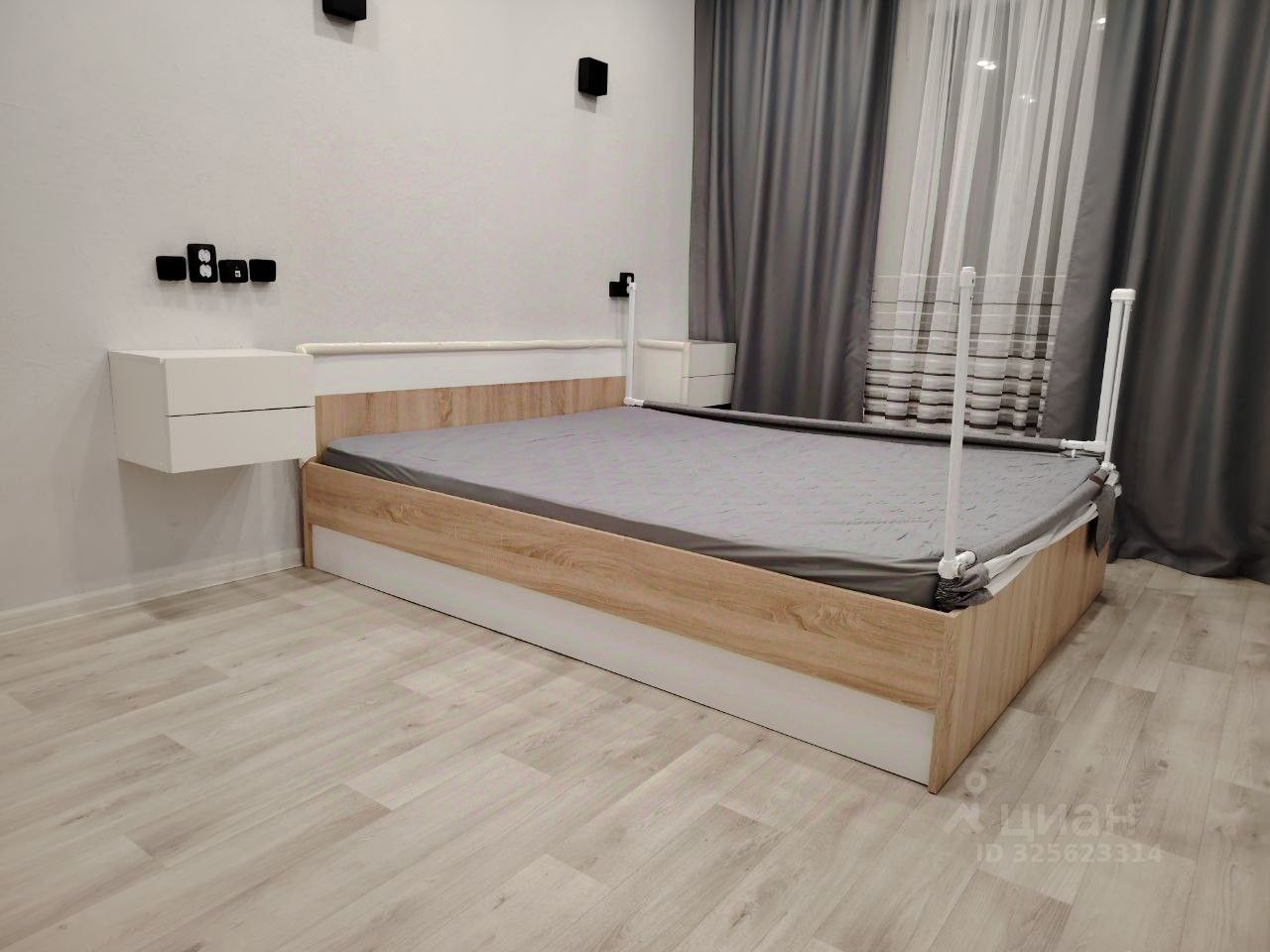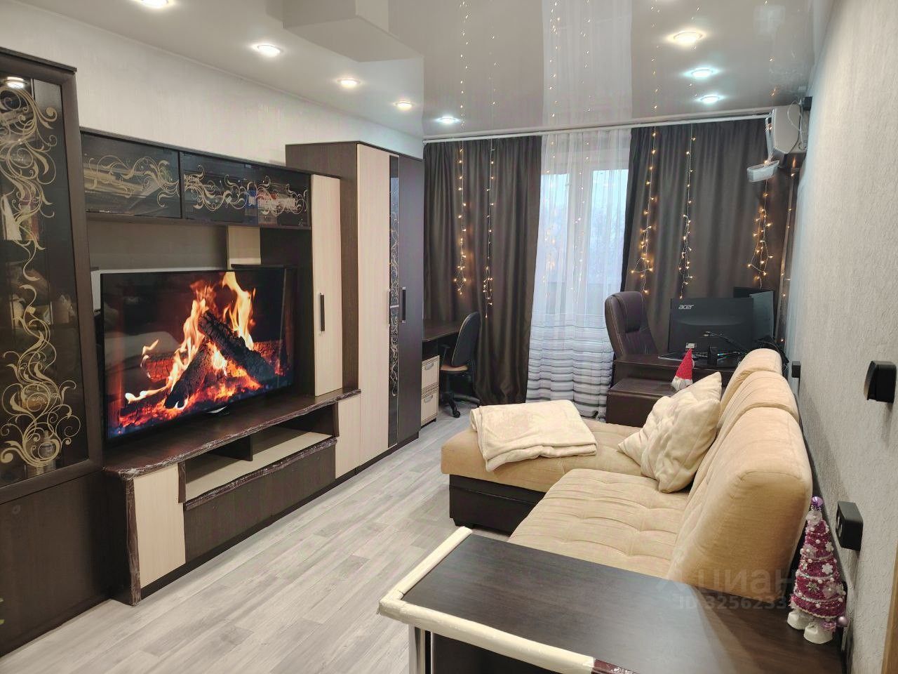 Во всей квартире натяжные потолки, много света, в прихожей — встроенный шкаф. Дополнительно установлены: кондиционер, фильтры на воду, полотенцесушитель, водонагреватель, посудомоечная машина 60 см. Стойки по углам кровати, парящие свечи в спальне, лента безопасности с мебели снимаются.