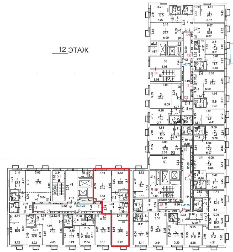 Два санузла, комнаты 20.6 и 13.5.
