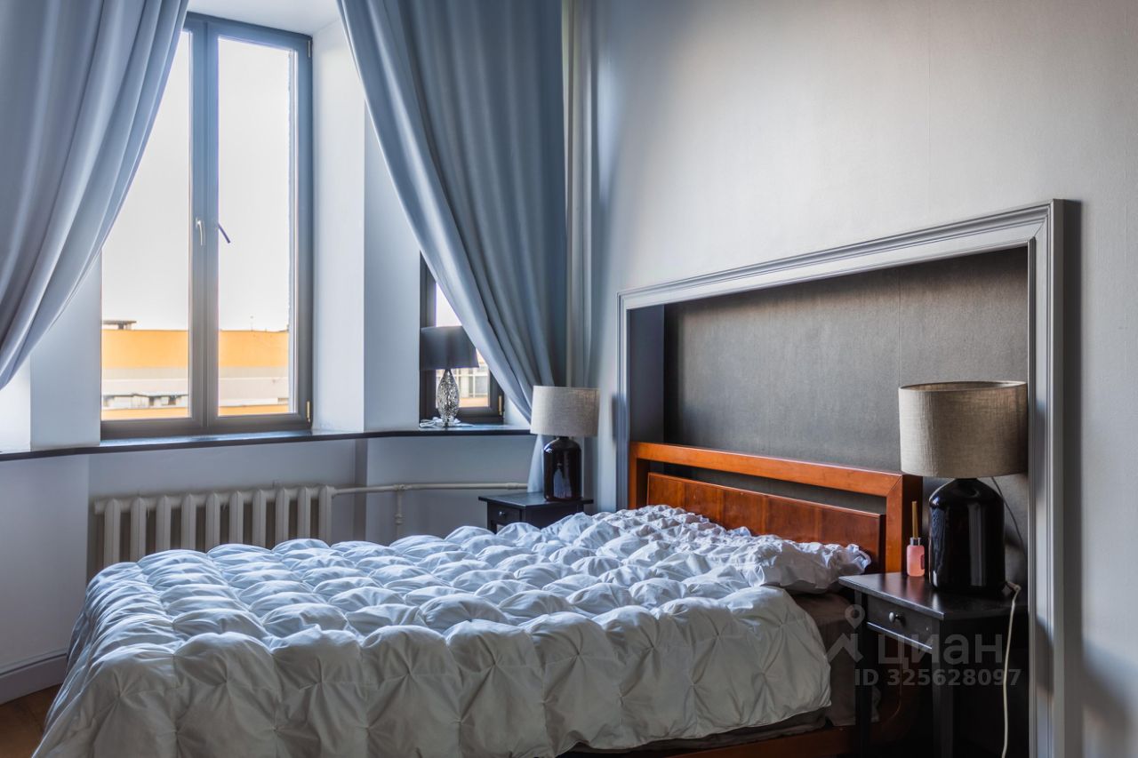 Стильная 2-комнатная квартира в кирпичном доме. 5 / 6 этаж. Спален: 1, санузлов: 1 раздельный. Общая площадь: 88 кв.м. Потолки 3.8 м. Ремонт в уникальном авторском стиле. Квартира с мебелью. Окна на 3 стороны света. Открытый вид и много света. В наличии: посудомоечная машина, холодильник, ванна. Высокоскоростной интернет.