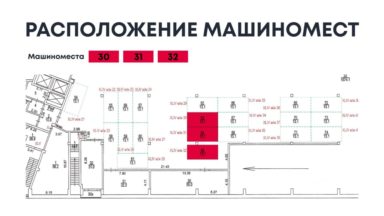 - 3 смежных независимых машиноместа