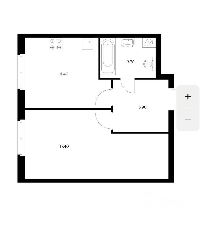 В квартире есть все для комфортного проживания: косметический ремонт, современная мебель в комнате, а также вся необходимая техника — кондиционер, холодильник, посудомоечная и стиральная машины, телевизор. Просторная кухня площадью 11.4 кв. м позволит вам готовить с удовольствием. Совмещенный санузел оборудован ванной.