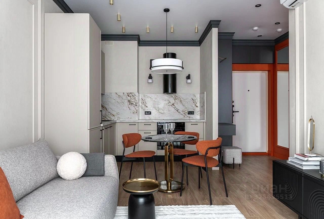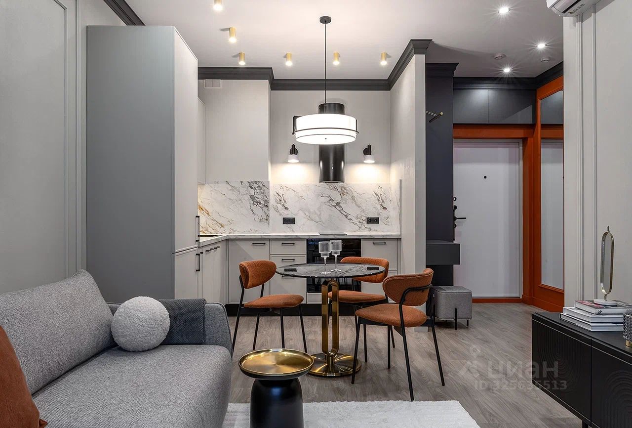 • Планировка: Изолированная спальня, просторная кухня-гостиная, совмещенный санузел, большая прихожая. • Ремонт и интерьер: Авторский дизайн-проект. Продуманная система хранения, стильное освещение, качественные отделочные материалы, безупречный текстиль и декор. • Техника и мебель: ВСЁ НОВОЕ. Вся встроенная мебель, индукционная плита, духовой шкаф, холодильник, посудомоечная и стиральная машины. Установлен кондиционер. • Для комфорта: 65-дюймовый Smart-телевизор.