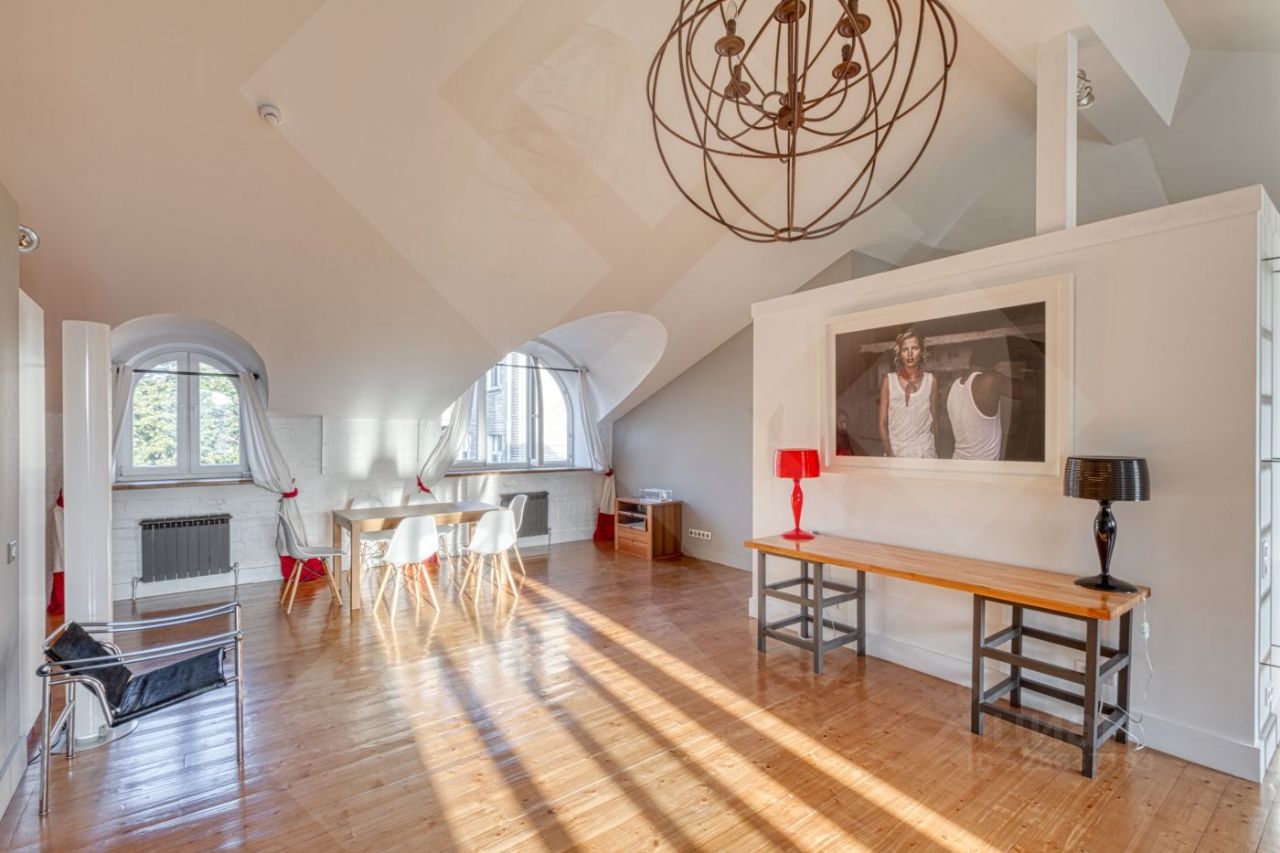 Предлагается в аренду стильная, просторная квартира-мансарда с террасой. Дизайн квартиры выполнен в стиле ''Лофт''. Гостиная совмещена со столовой зоной и зоной кухни. 2 спальни со своими санузлами и гардеробными, полноценный гостевой санузел c душевой и постирочной при входе в квартиру, бойлер. Квартира со вкусом меблирована, дополнена стильными предметами интерьера и укомплектована всей бытовой техникой ведущих европейских производителей. Оснащена системой кондиционирования, система ''теплый пол''. Окна выходят на 2 стороны. Не шумно, вторая линия домов. Малоквартирный особняк после полной реконструкции в районе Чистых прудов. Высокая степень безопасности, круглосуточный консьерж- сервис, огороженный внутренний двор, парковка перед подъездом.