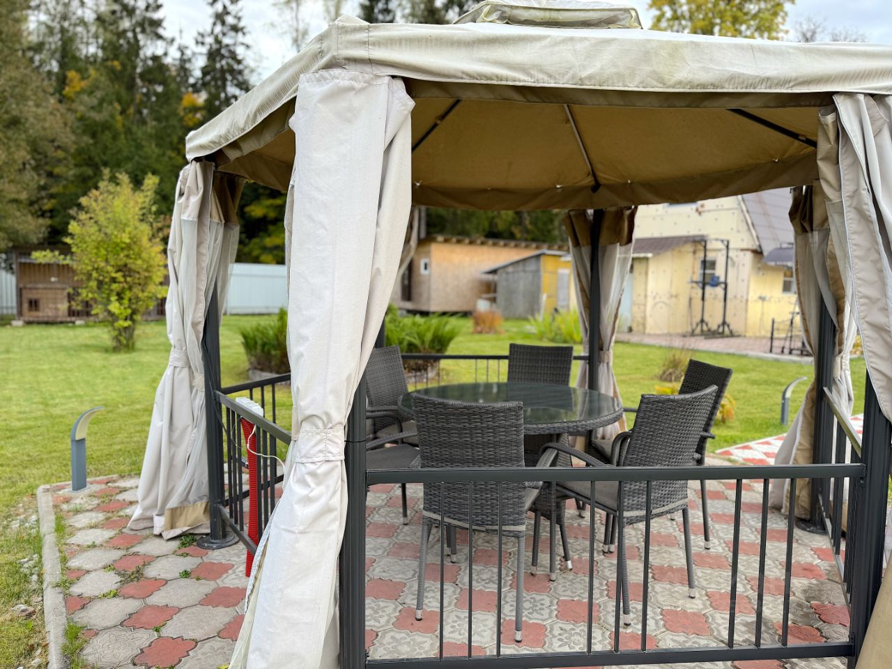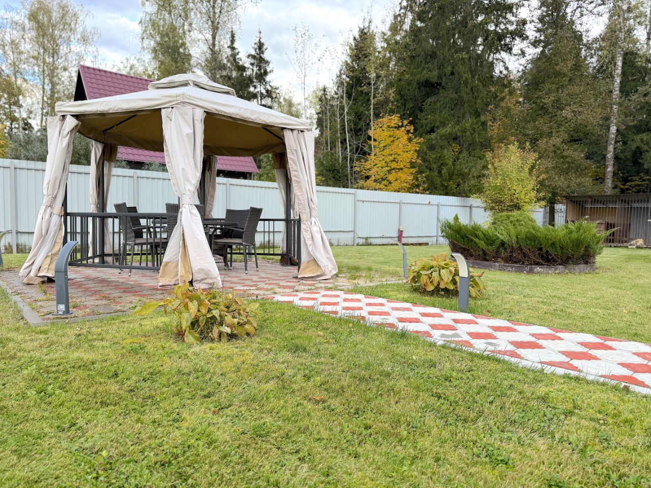 Продаётся дача с благоустроенным участком! Продаётся дача с ухоженной территорией и всеми условиями для комфортного проживания и отдыха. Преимущества участка: 1.просторная площадка, выложенная плиткой, въездная группа залита бетонной армированной плитой, чтобы плитка не проваливалась, 2.зелёный газон и декоративные клумбы, смородина и цветы, 3.зона отдыха с кованым мангалом и навесом, 4.большой шатёр с освещением и розетками внутри, с отоплением для прохладных вечеров и осенних посиделок прекрасно подходит для семейных ужинов и встреч с друзьями, 5.участок огорожен забором, по периметру видеонаблюдение, удобный подъезд. 6. собственный выход в лес. 7. в доме интернет (оптоволокно).