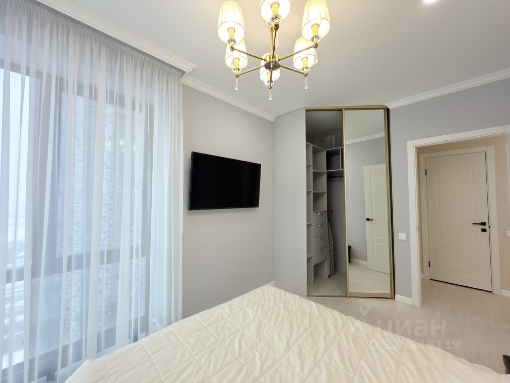 Квартира с евроремонтом: в комнатах и на кухне есть вся необходимая мебель для комфортного проживания. Установлена современная техника — кондиционер, холодильник, телевизор и стиральная машина, что позволяет сразу заехать и жить без забот. Ванная комната оборудована ванной, а окна выходят на улицу, обеспечивая хороший вид и естественное освещение.
