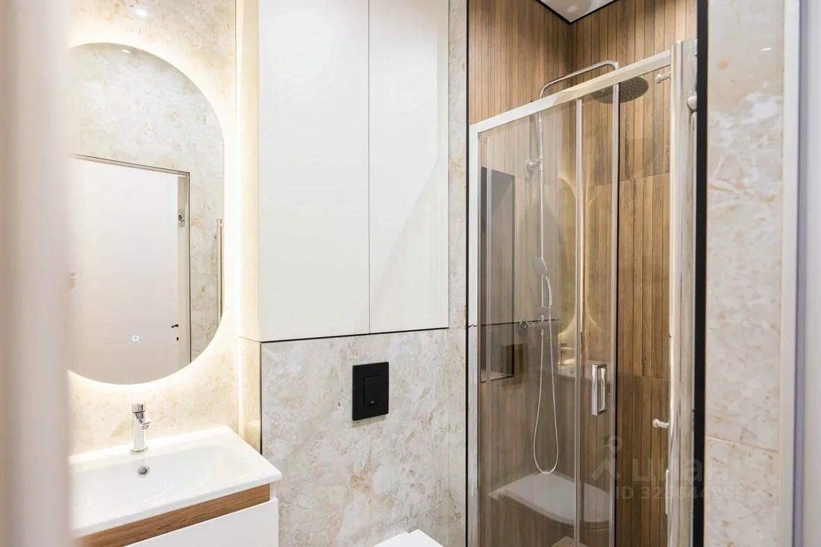 8) санузел с большой душевой, подвесным унитазом Grohe, системой хранения и теплым полом