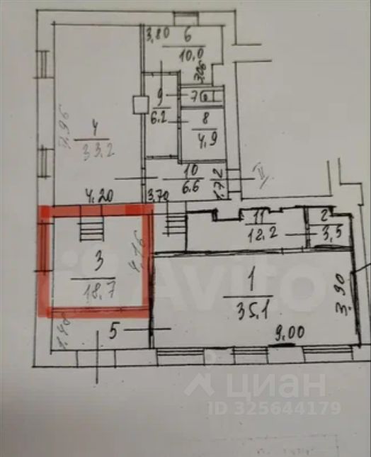 Общая площадь18,7 м2