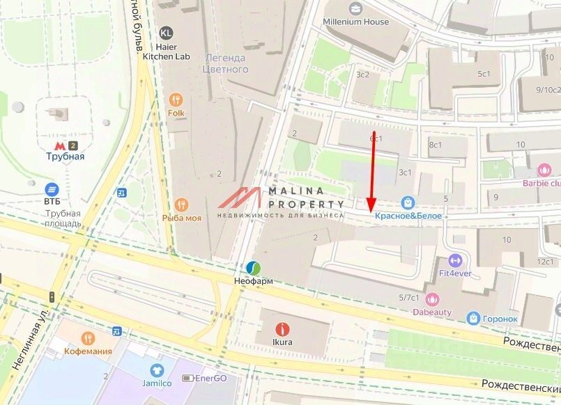 Помещение в центральном административном округе г. Москва. В непосредственной близости от метро Трубная.