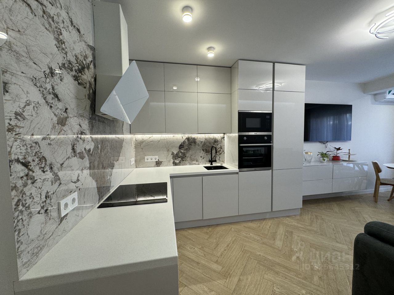 Представляем вашему вниманию просторную 3-комнатную квартиру с дизайнерским ремонтом, расположенную на 14 этаже современного дома 2017 года постройки. Общая площадь квартиры составляет 97,6 кв. м, из которых 58 кв. м отведено под жилую зону и 16 кв. м занимает кухня. Высокие потолки в 3 метра добавляют ощущение простора и света. Из окон открывается вид как на улицу, так и во двор.