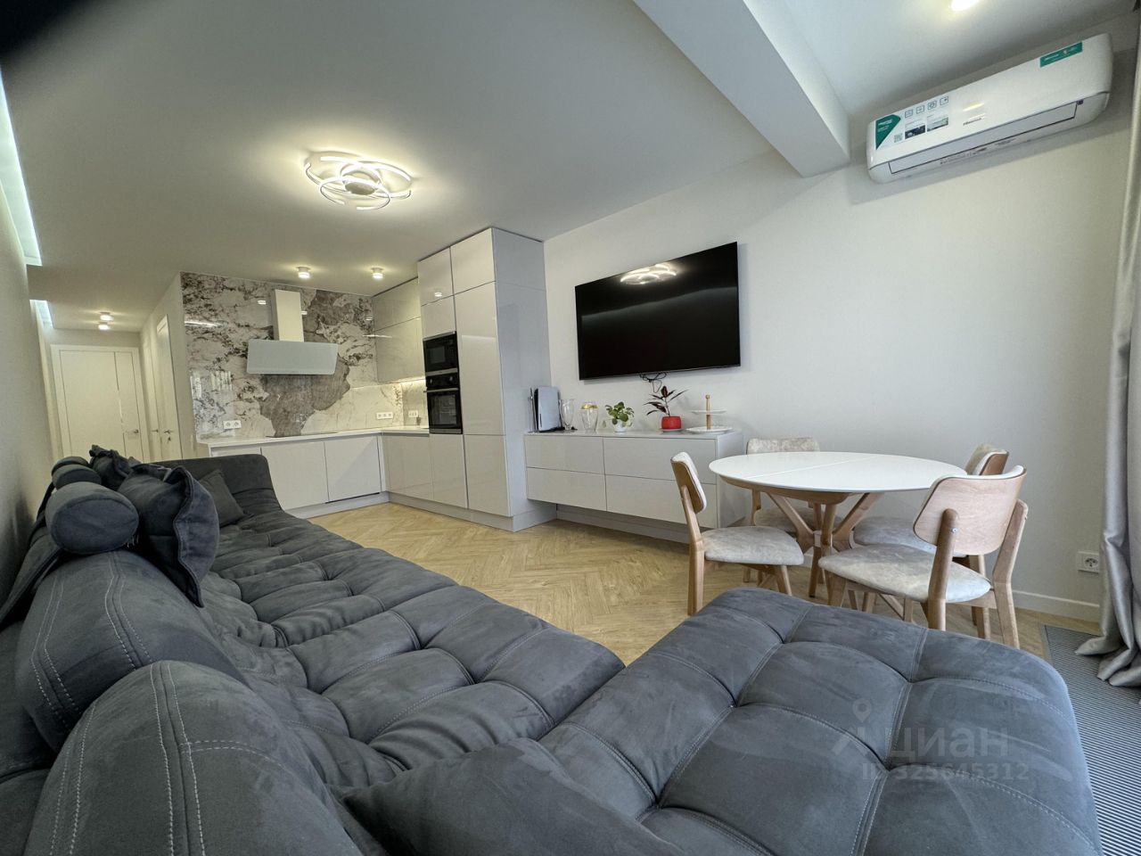 Квартира выполнена в дизайнерском стиле с использованием качественных материалов. Просторная кухня оборудована современной техникой и готова стать местом для кулинарных экспериментов. В квартире есть две ванные комнаты, что удобно для семейного проживания. Также имеется лоджия, где можно обустроить уютное место для отдыха.