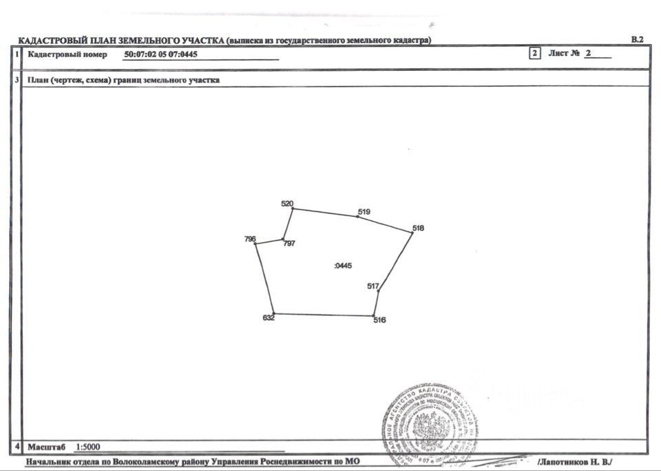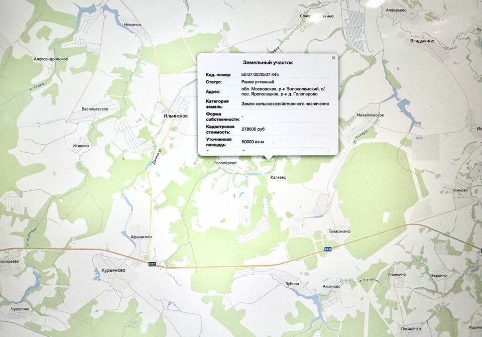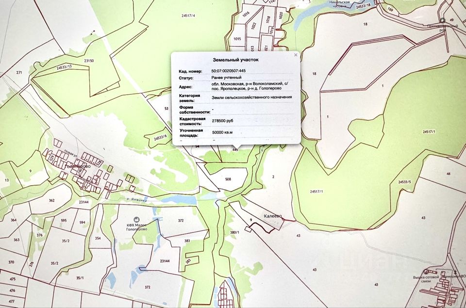 Продается земельный участок по адресу, Московская обл, р-н Волоколамский, с/пос. Ярополецкое, р-н д. Голоперово ) / Кадастровый номер 50:07:0020507:445/ 50.000 кв.м., Разрешенный вид использования: Для ведения крестьянского (фермерского) хозяйства. Перспективное живописное место, обеспечивающее идеальные рекреационные свойства района, удобный подъезд с Новорижского шоссе, вся инфраструктура города Волоколамска.