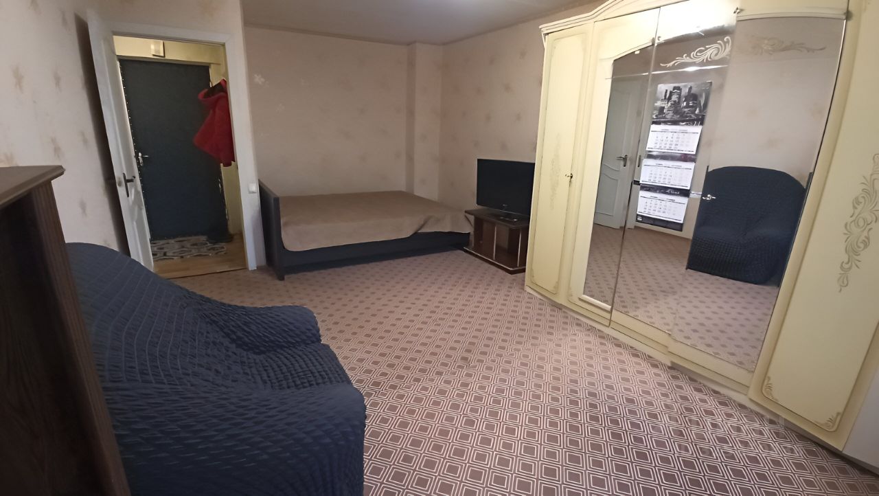 Есть все необходимое для длительного проживания, в комнате и на кухне: диван, кресло, шкаф для одежды, холодильник, стиральная машина, интернет, телевизор.