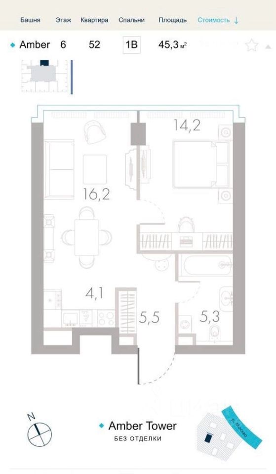 В жилом комплексе премиум-класса ''River Park Кутузовский'' предлагается к продаже 2-комнатная квартира: * корпус AMBER, * Этаж - 6, * Площадь - 45,3 м', * Высота потолков - 3,1 метра! * Вид на Парк и новый архитектурный объект!