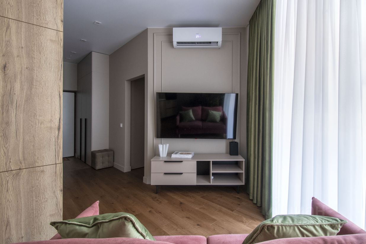 В квартире сделан дизайнерский ремонт, который сочетает в себе стиль и функциональность. Просторная кухня площадью 15 кв. м обставлена современной мебелью и оборудована всей необходимой техникой: холодильником, посудомоечной машиной и кондиционером. В комнате также есть вся необходимая мебель, а для вашего удобства установлен телевизор. Совмещенный санузел оснащен ванной и стиральной машиной, что делает проживание максимально комфортным.