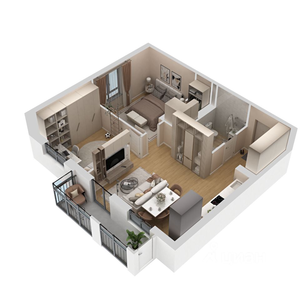 ''Элерон'' — это дом, где каждый день начинается с ощущения полёта. Здесь свобода и лёгкость наполняют каждое пространство, создавая атмосферу, в которой идеи обретают крылья, а моменты — значимость. Дом словно парит над ритмом города, соединяя в себе динамику современности и спокойствие уединения. Концепция ''Элерона'' вдохновлена самим полётом — это жизнь на высоте, где всё построено для гармонии и движения вперёд. В доме всё продумано до мельчайших деталей, словно каждый метр — это часть точного маршрута. Стилобатная секция напоминает о крыльях самолёта, расправленных для нового взлёта. Семейные встречи в лаунж-зоне, работа в коворкинге и отдых во дворе здесь переплетаются в единый поток, где каждый шаг — это взвешенное решение, а каждая минута прожита осознанно. ''Элерон'' — ваш личный аэродром, готовый к новым горизонтам