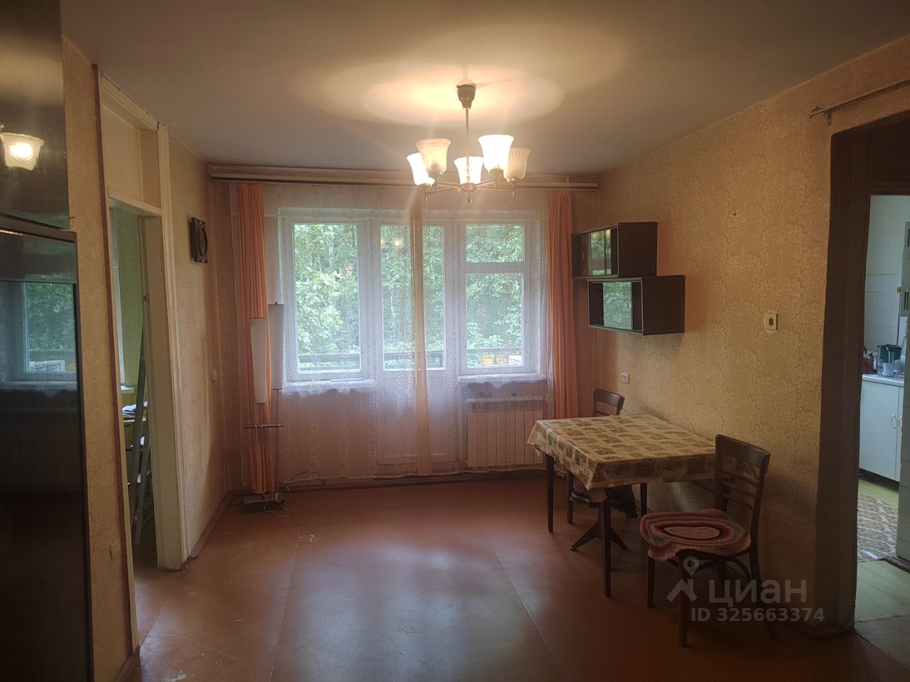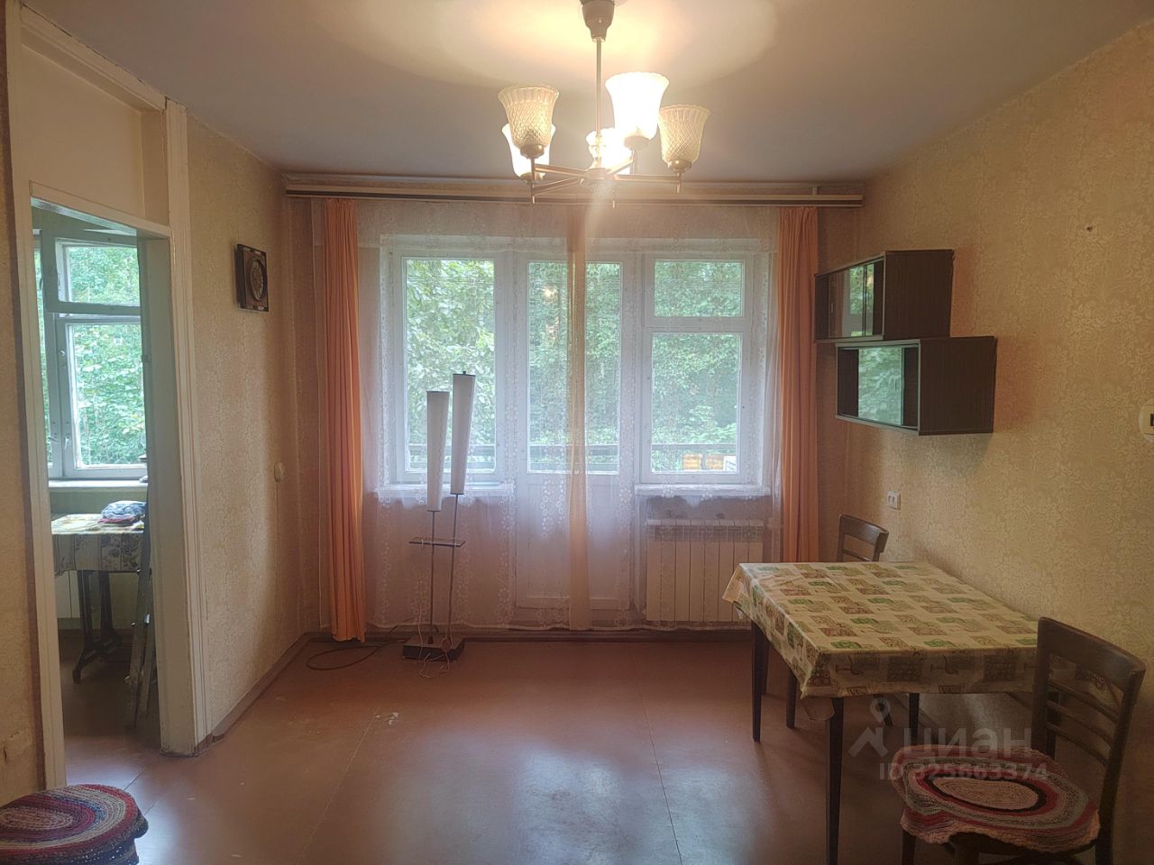 Продается 2-х комнатная квартира в очень зеленом и тихом месте. Окна квартиры выходят на небольшой лес.