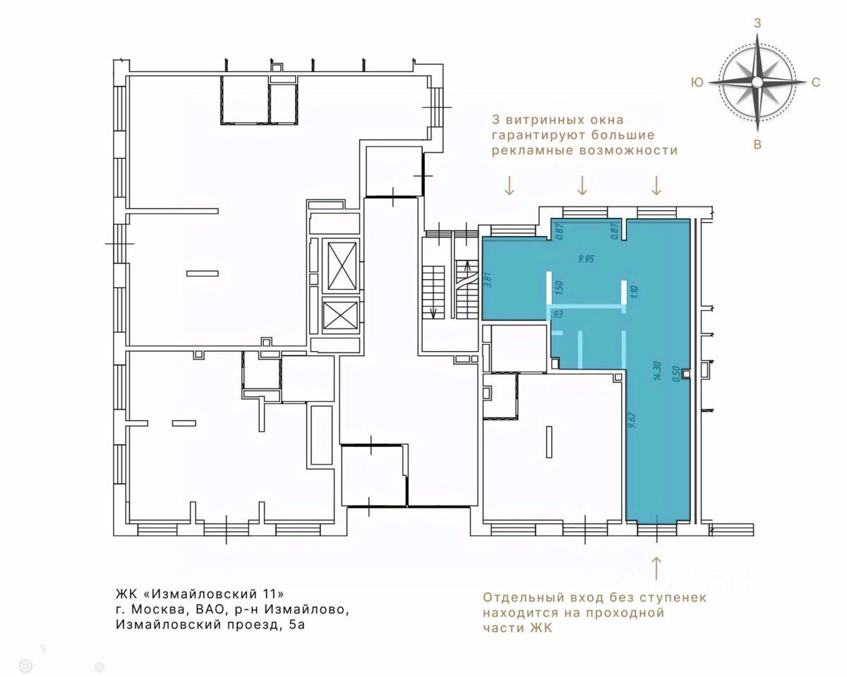 Купите помещение 79 м² в ЖК ''Измайловский 11''! Первый этаж, отдельный вход без ступенек. Дизайнерский ремонт. Высота потолков 4 м., три витринных окна. Электрическая мощность 15,8 кВт, проведён интернет. Возможно изменить планировку под себя. Помещение расположено в проходной части ЖК. Отличный выбор для открытия бизнеса, инвестиций или сдачи в аренду! При сдаче в аренду это помещение может приносить: МАП: от 200 тыс., ГАП: от 2 400 000 руб.