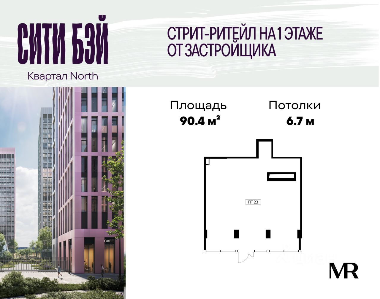 Продаётся коммерческое помещение свободного назначения с отдельным входом на 1 этаже жилого комплекса Сити Бэй от застройщика. Площадь помещения 90,4 м².