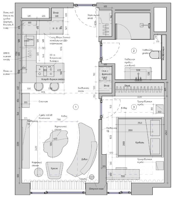 Техника: - варочная панель Smeg Induction - автоматическая кофемашина Smeg Dolce Stil Novo - винный холодильник Smeg Dolce Stil Novo - духовой шкаф c СВЧ Smeg Dolce Stil Novo - посудомоечная машина Smeg - встроенный холодильник Smeg - телевизор Samsung - стиральная машина