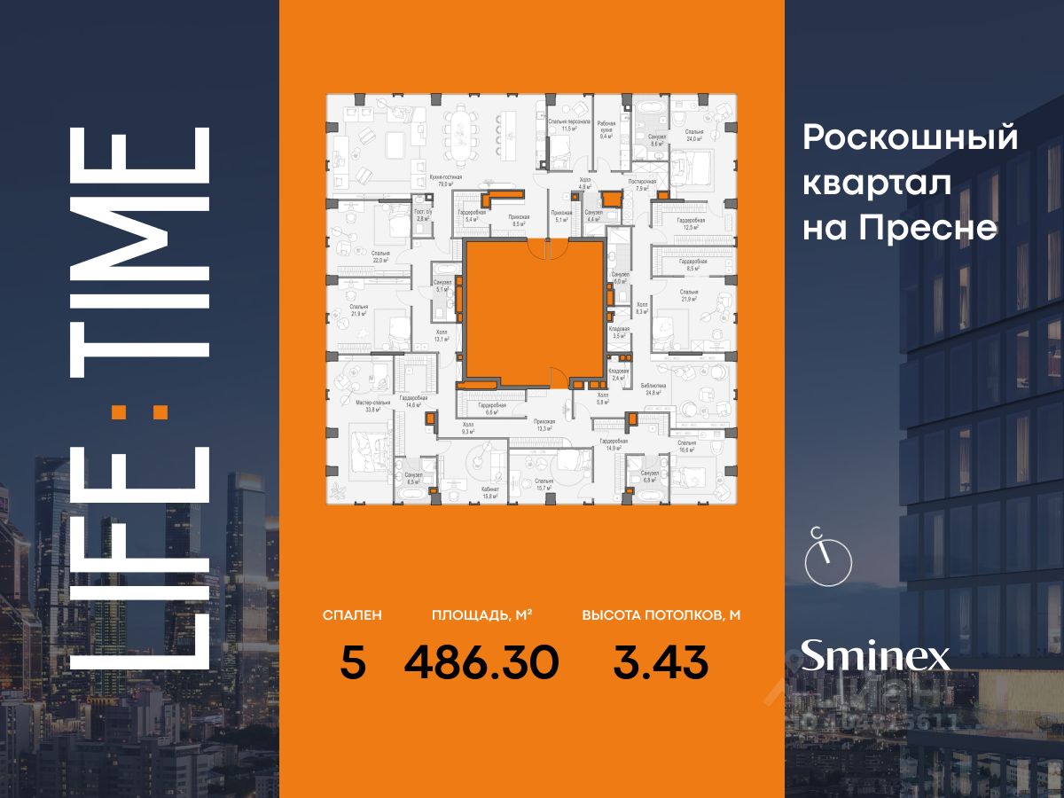 Life Time - роскошный современный квартал на Пресне, в наиболее быстро растущем премиальном районе ЦАО. Его насыщенная инфраструктура и выгодное расположение дарят время для жизни. Вы больше не тратите его на дорогу или ожидание, при этом ни в чём себе не отказывая. На территории предусмотрено всё для комфортной жизни: • двор-парк площадью 1,8 гектара с прудом и фонтанами, • Clubhouse - инфраструктурный центр в отдельном здании с исчерпывающими возможностями для спорта, отдыха и досуга только для жителей, • спортивная инфраструктура на улице и в помещении, в том числе бассейн длиной 25 метров, хот-таб, хаммам, сауна, бьюти-зона, • клубная гостиная с террасой, • всё для развития и досуга детей любого возраста, в том числе детский сад и школа. Life Time находится в центре сложившегося премиального района, в окружении многочисленных парков. Удобная транспортная доступность и прямой выезд на Звенигородское шоссе позволяют без проблем добраться до Садового кольца и Москва-Сити. Архитектурный стиль квартала - роскошный минимализм. Дома десятилетиями будут выглядеть современно.