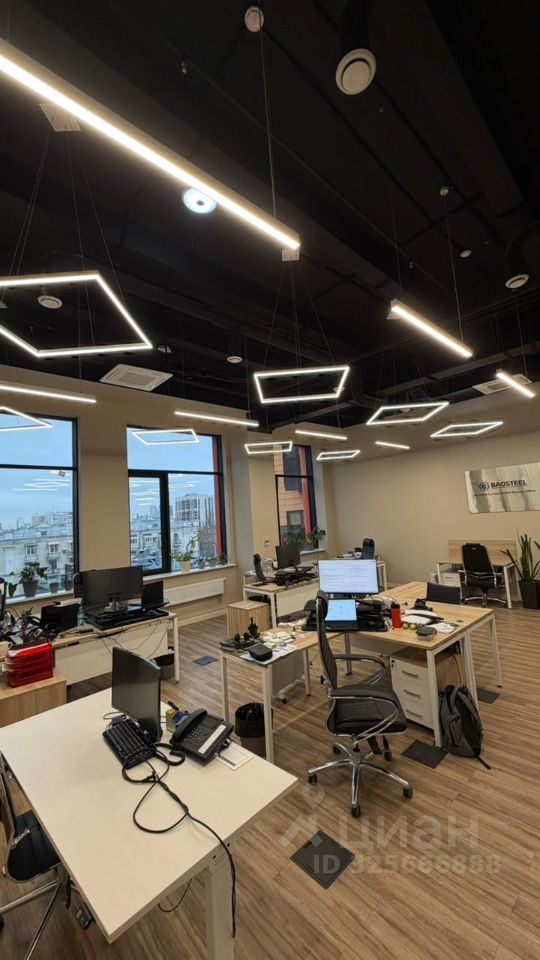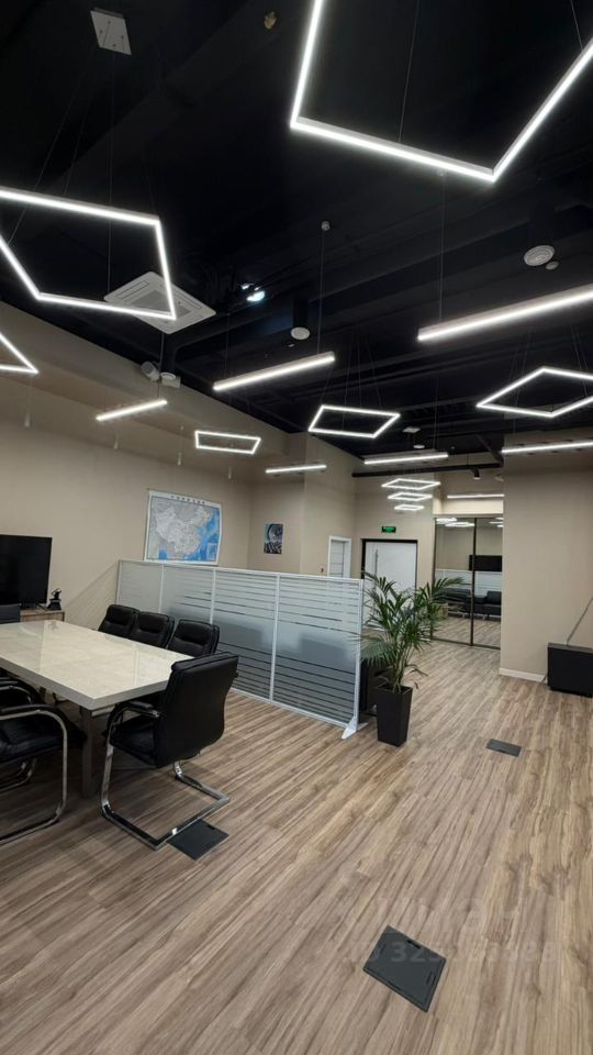 Качественный дизайнерский офисный ремонт с шикарным освещением, кухня с мокрой зоной, две гардеробные, хозблок, модульные электророзетки установлены в фальшпол, красивый вид из окон, круглосуточная охрана, система видеонаблюдения, центральная система ВиК.