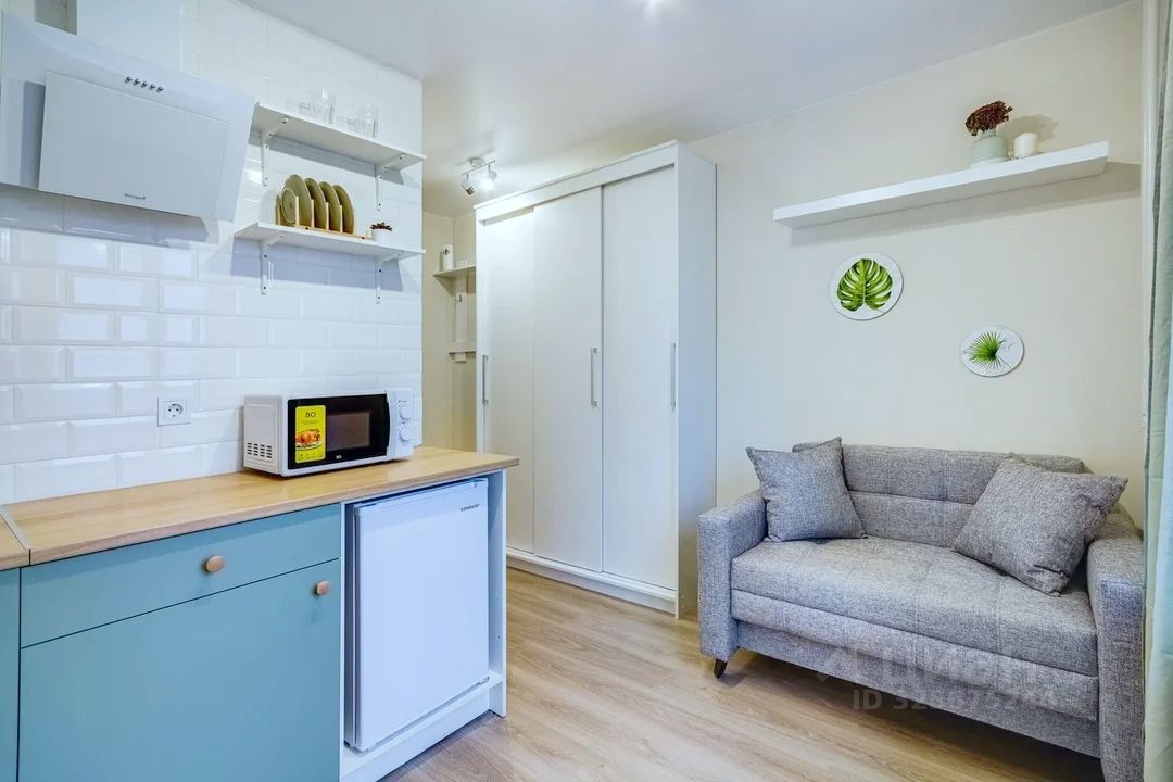 Студия в хорошем состоянии, до метро 7 минут пешком, подходит для одного жильца.