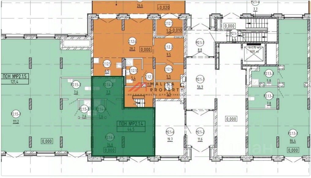 Помещение 44,5 м2, располагается на 1 этаже, открытая планировка, отдельный вход с фасада, высота потолка 4 м, витринные окна по фасаду. Парковка перед фасадом. Место для размещения рекламы.