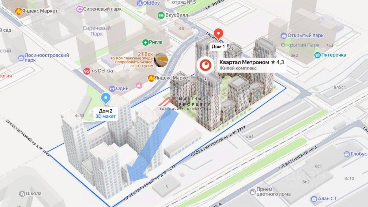 Жилой комплекс ''Метроном'' комфорт-класса на 2 628 квартир. Все квартиры сдаются в предчистовой отделке. Более 6 942 квартиры в радиусе 500 м. Ввод в эксплуатацию 4 квартал 2026 года.