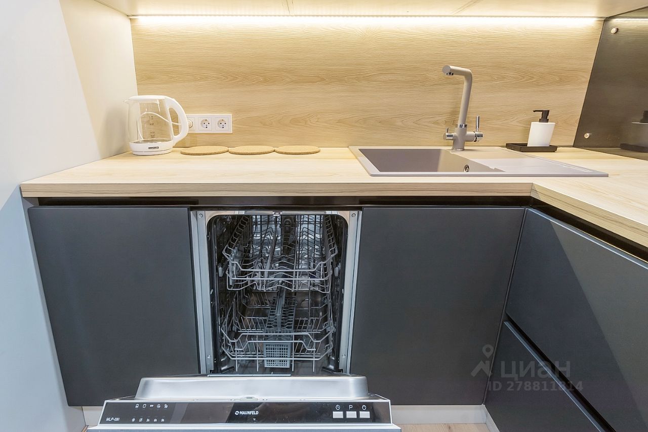 Кухня: - плита, духовка, микроволновая печь, вытяжка, чайник, кофемашина, посудомоечная машина, холодильник, - набор посуды и вся необходимая утварь, - чай, кофе, соль, сахар.