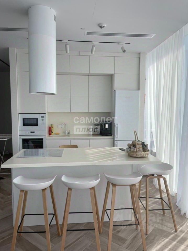 Что вас ждёт внутри? Дизайнерский ремонт в светлых тонах — атмосфера лёгкости и простора. Полностью оборудованная кухня со встроенной белой бытовой техникой — готовьте с удовольствием.