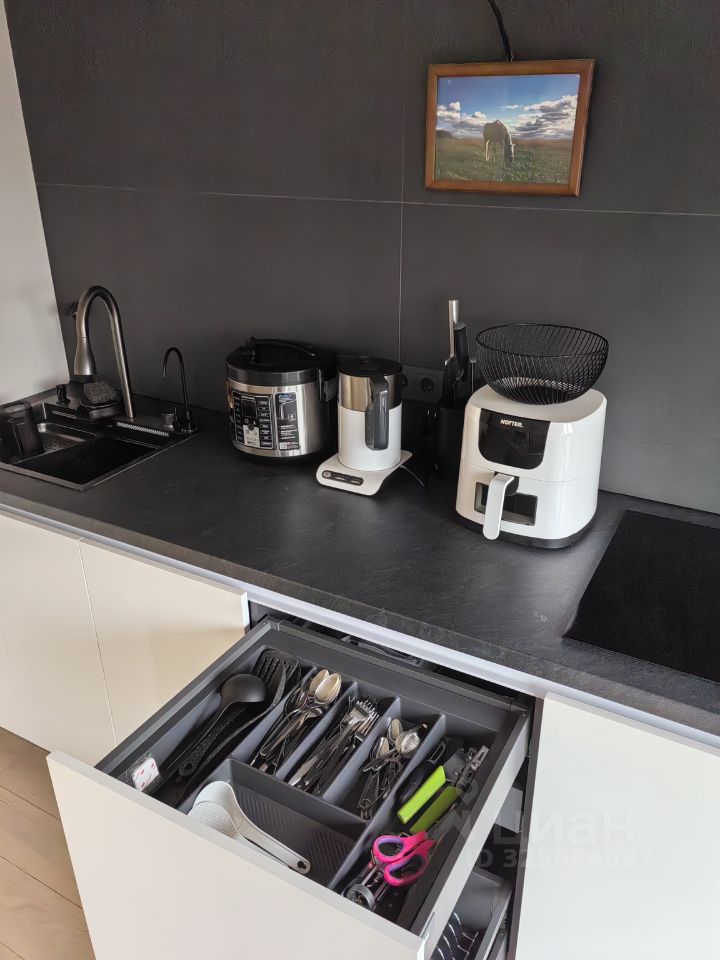 Продаётся полноценная 1 квартира 37,5 кв. м. с просторной кухней-гостиной (1+1). Подходит для жизни и аренды. Панорамное остекление с шикарным видом на город и Лосиный остров. В квартире выполнен новый и качественный ремонт по дизайн-проекту в стиле минимализм-лофт с хорошо продуманной эргономикой. Планировка согласована и узаконена в соответствующих инспекциях, документация имеется. Квартира полностью укомплектована мебелью и техникой, все остаётся в соответствии и описанием с фото: - Встроенный кухонный гарнитур: электрическая плита с варочной панелью и встроенной вытяжкой. Современная широкая мойка с комплектующими, установлен фильтр питьевой воды. Чайник Bosch, мультиварка Redmond, аэрогриль Hotter. Духовой шкаф с СВЧ. Полка с подсветкой над рабочей зоной.
