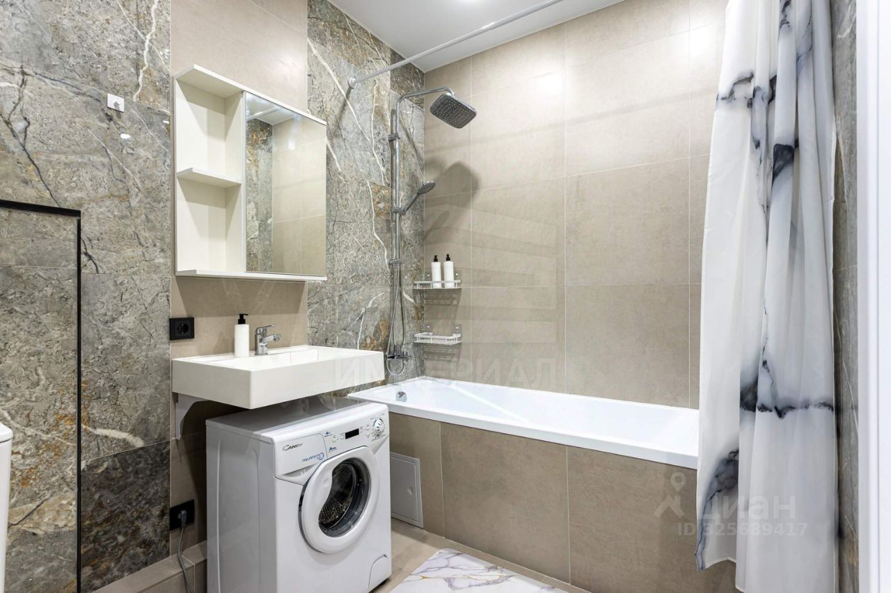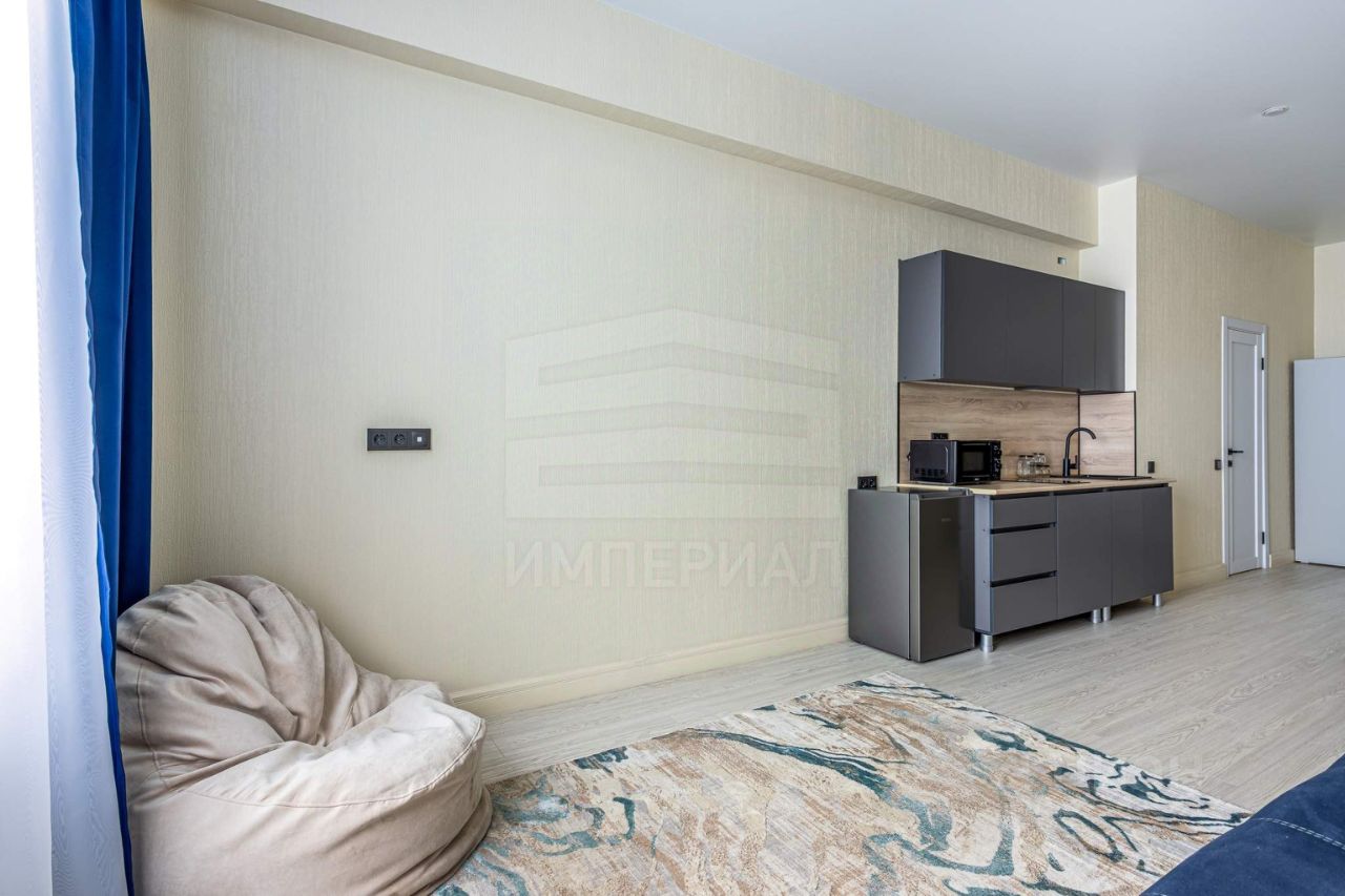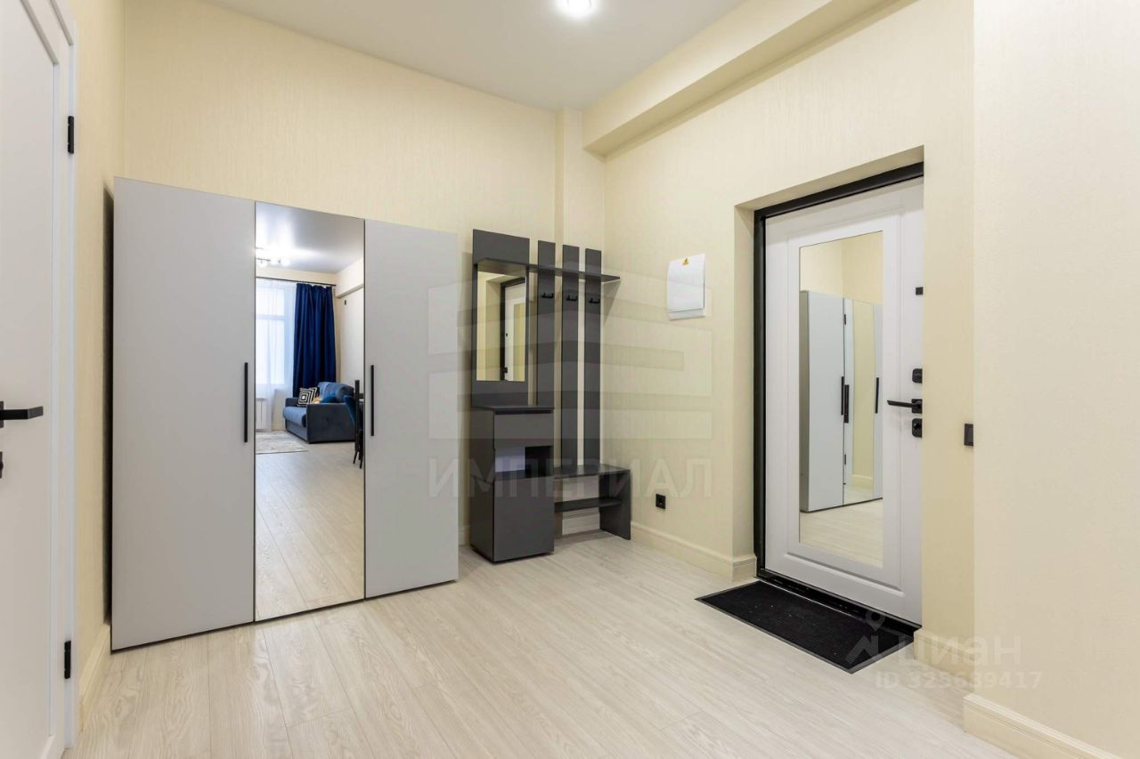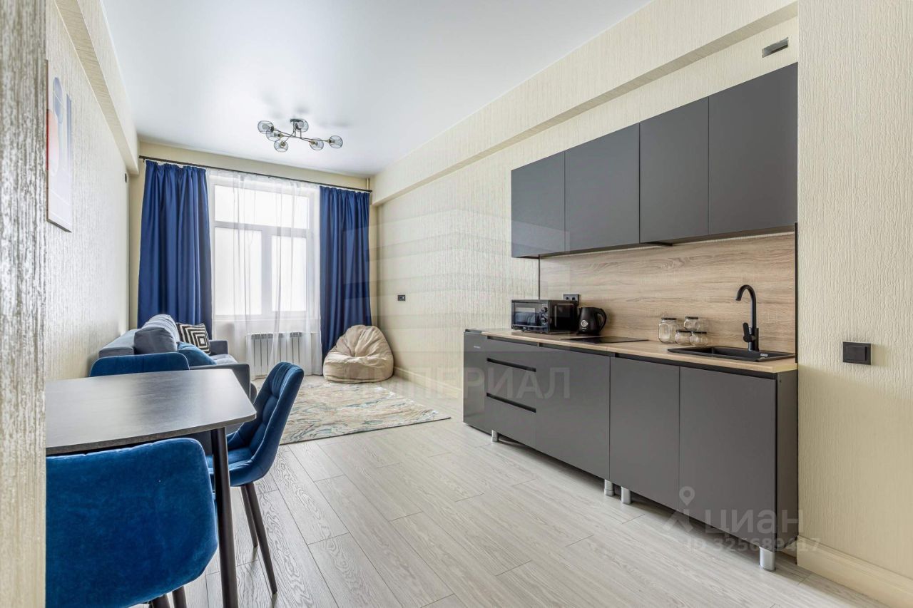 Внутри сделан современный и стильный евроремонт с использованием материалов высокого качества. На полу постелен ламинат, на стенах поклеены светлые обои, полностью мебелированный. Высота потолков — 3 метра.