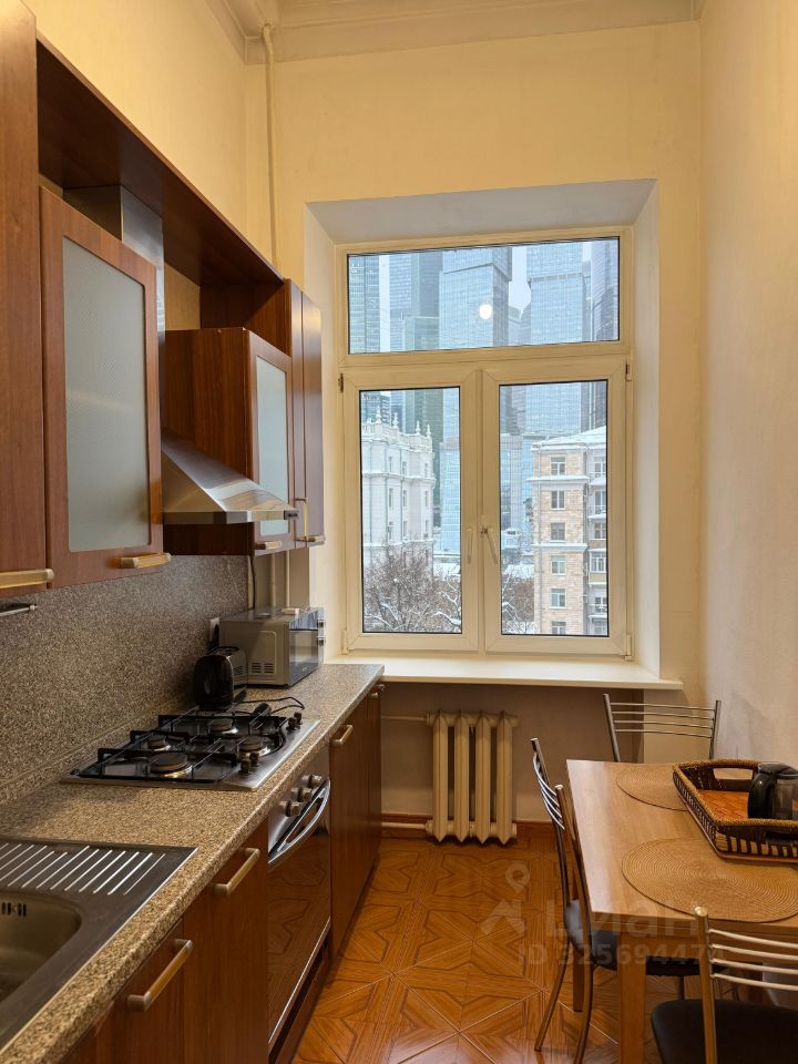 Сдается уютная двухкомнатная квартира в кирпичном доме на шестом этаже из семи. Дом построен в 1944 году, находится всего в 7 минутах пешком от станции метро Кутузовская. Высокие потолки — 4.35 метра, создают ощущение простора.