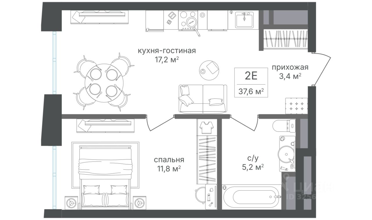 Общая площадь37,6 м2