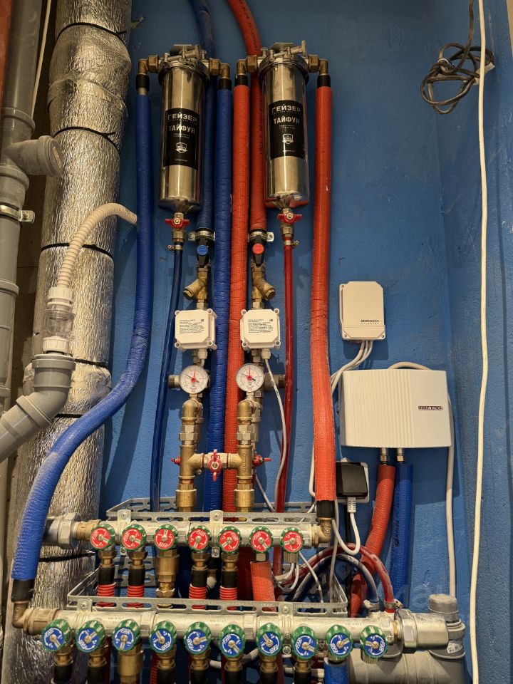 Материалы/отделка: Потолок гипсокартон (основная площадь), натяжные матовые потолки (санузел), Стены и потолок под покраску краска Derufa 7 (матовая), Напольное покрытие трехслойная инженерная доска с покрытием шелковое масло Coswick, Керамогранит Italon, Микроцемент Italica шегрение 300, Освещение треки и точечные светильники SWG, световые ленты Arlight, Электрика Donel R98, Atlas Design, Электрика в щитке IEK, Двери скрытого монтажа Union, Входная дверь Lummix (ЛеГран) с наружным открыванием, Сантехника Grocenberg, ванная литьевой мрамор Estet Честер, унитаз Vitro Sento, инсталляция TECE, Радиаторы Rifar Tubog, Система защиты от протечек Gidrolock, Проточный водонагреватель трехфазный Stiebel Eltron, Приточные установки/Бризеры Tion Bio X, Royal Clima Brezza.