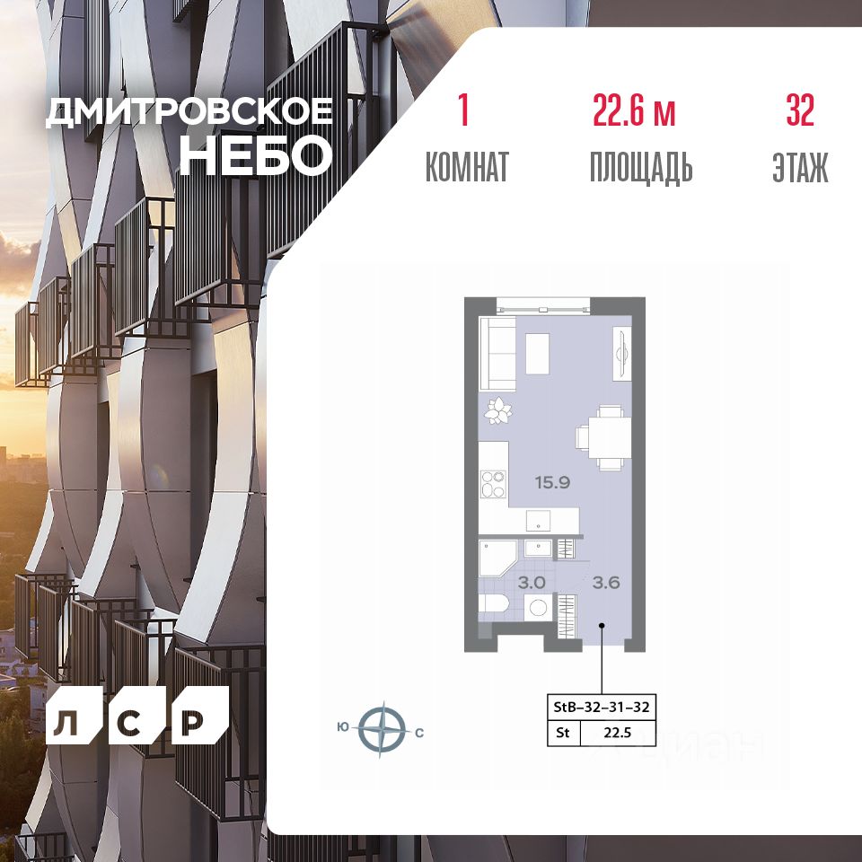 Продается квартира студия площадью 21.70 кв.м на 32 этаже 32 этажного монолитного дома в ЖК ''ДМИТРОВСКОЕ НЕБО'' от Группа ЛСР. ''Дмитровское небо'' —жилой квартал бизнес-класса в Северном административном округе в районе Западное Дегунино. Находится среди парков и водоемов, вблизи всей необходимой для современной жизни инфраструктуры. Особенностью проекта является благоустроенный сквер площадью 1.5 га.