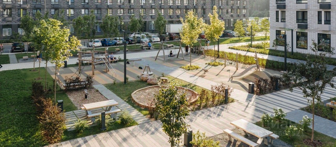 Во дворах-парках жилого квартала есть места для отдыха, детские и спортивные площадки. На первых этажах домов расположены магазины, кафе и полезные сервисы. Также вблизи проекта есть несколько масштабных торговых центров. До ТЦ ''Саларис'' пять минут пешком. Артикул 1006232 (Застройщик ООО ''Специализированный Застройщик ''Тирон'')
