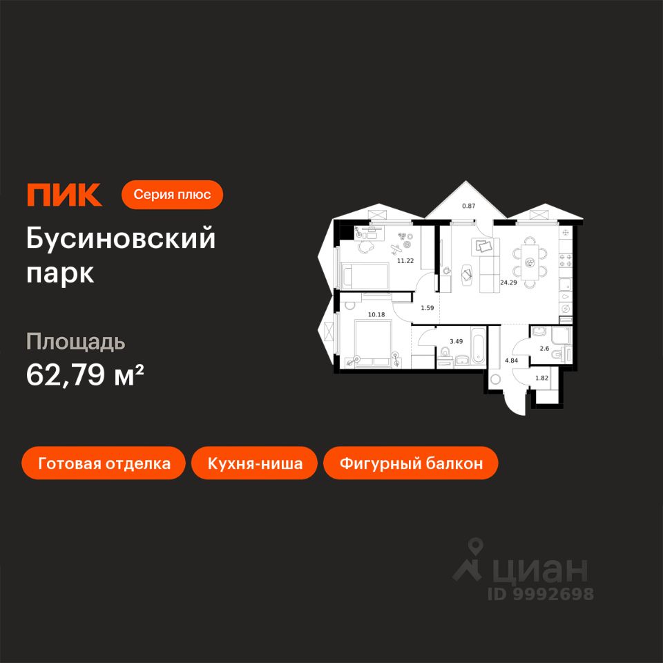 В ''Бусиновском парке'' предусмотрены квартиры с панорамным остеклением, различными балконами, эркерами, угловыми окнами и большим количеством окон — до пяти в одной комнате. В таких квартирах широкий угол обзора: можно пить кофе, наблюдая за жизнью на улице и наслаждаясь ощущением простора. Ещё больше комфорта придаст мягкий солнечный свет, который равномерно осветит всю квартиру. Артикул 947546 (Зас