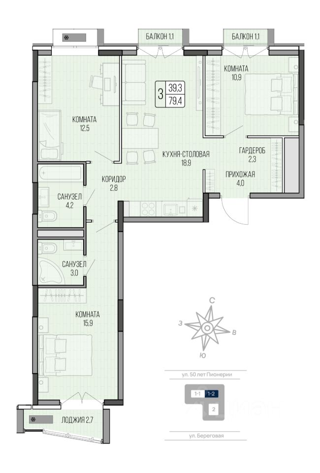 продам 3-к, 50 лет Пионерии, 4112 300 553 ₽