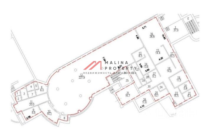Помещение общей площадью 665 м2. На 1 этаже 496 м2, на 2 этаже 169 м2. Смешанная планировка, отдельный вход с фасада, высота потолка 3 м, витринные окна по фасаду. Электрическая мощность 100 кВт. Парковка перед фасадом. Место для размещения рекламы.