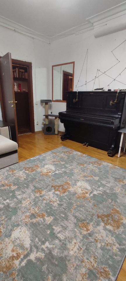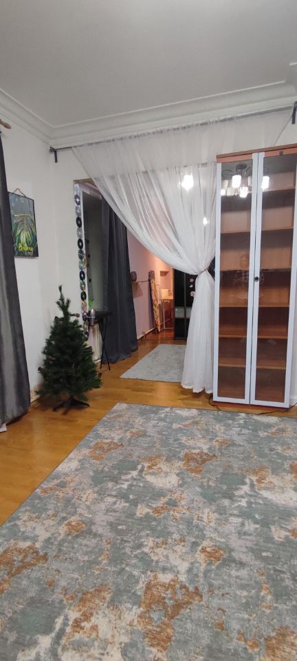 В самом сердце ЦАО, в Хамовниках сдаются 3 совмещенных комнаты в четырехкомнатной квартире. ВНИМАНИЕ! Это одна комната из которой вытекает другая поменьше, а из неё ещё одна маленькая. На фото показано, что есть перегородка в виде занавески и стеклянных дверей купе. Стен и дверей между ними нет.