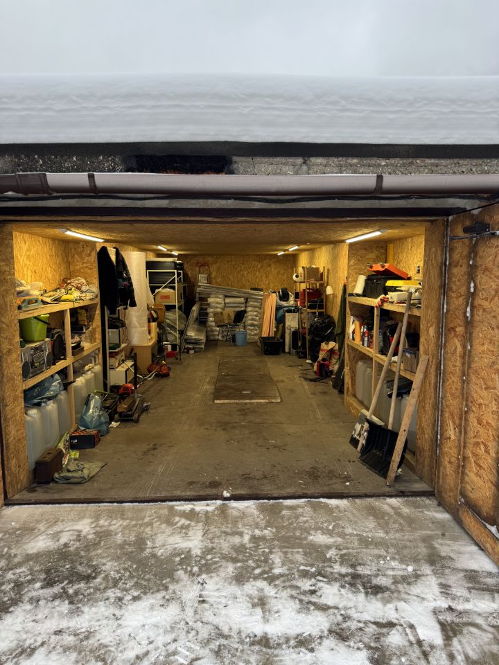 Утеплённый гараж (в собственности) 35 кв.м. на два автомобиля 9.60м.*3.60м., ворота 2.90м.*1.85м.. Подвал: комната 2.40м.*1.90м., смотровая яма 1.60м*1.55м..