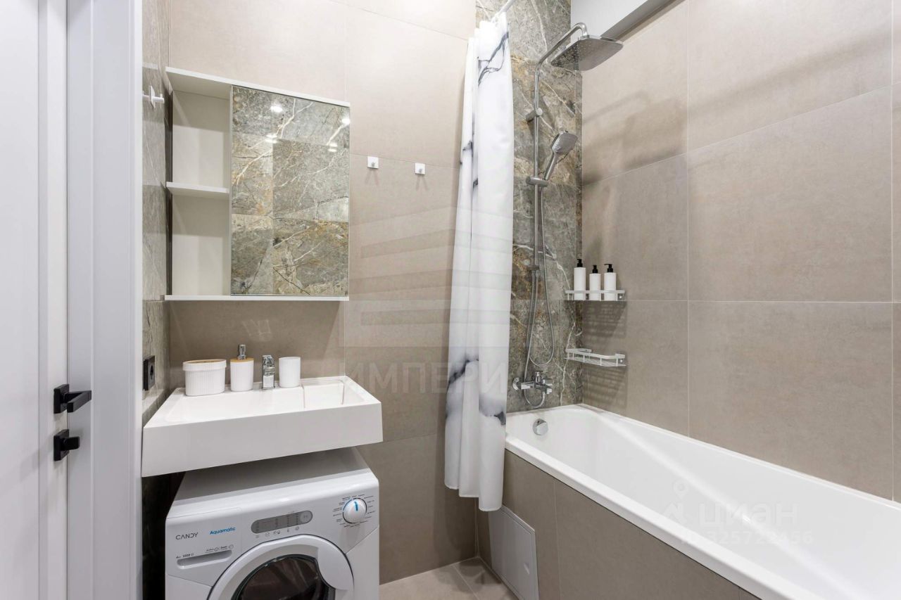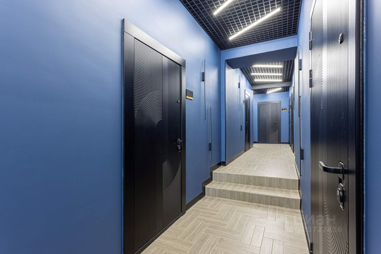 Внутри сделан современный и стильный евроремонт с использованием материалов высокого качества. На полу постелен ламинат, на стенах поклеены светлые обои, полностью мебелированный. Высота потолков — 3 метра.