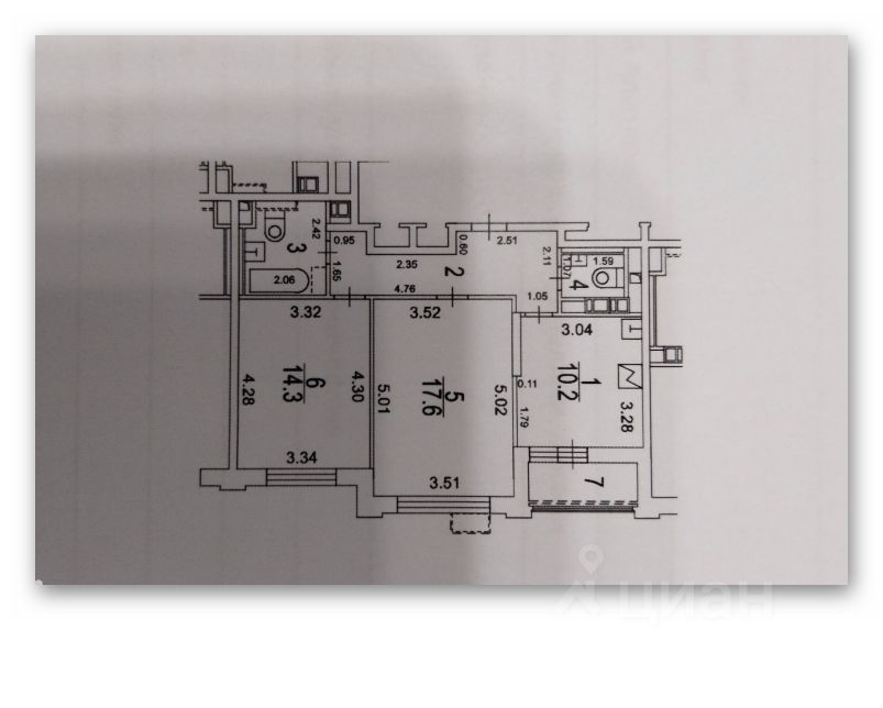 Планировка включает в себя 2 отдельных санузла с ванной. Из окон открывается вид во двор, а также есть лоджия.