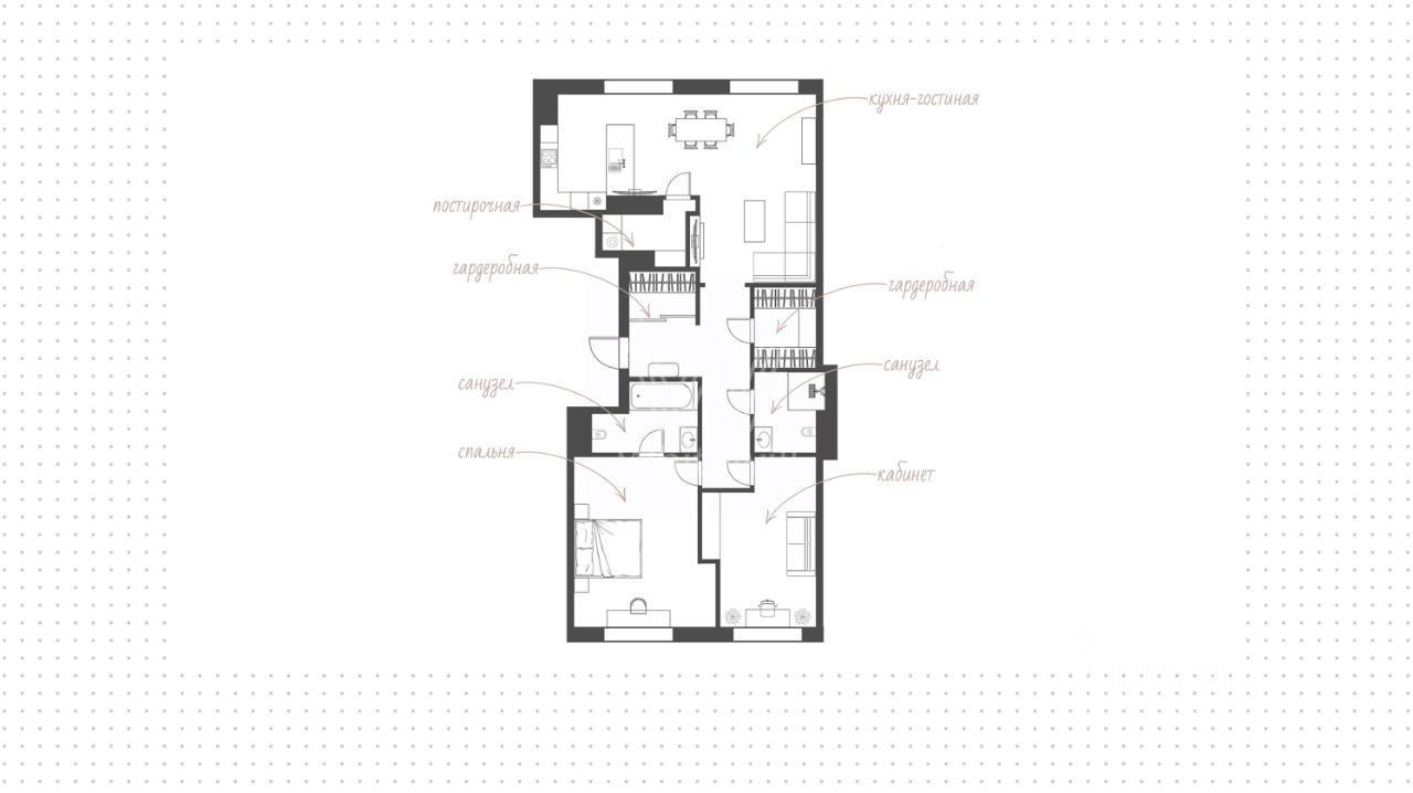 Установлены система очистки воздуха Mitsubishi с климат-контролем и теплые полы. Сантехника представлена брендами Villeroy&Boch, Hansgrohe, Devon&Devon. Планировка включает кухню-гостиную с камином, мастер-спальню со своим санузлом, кабинет, который можно оборудовать как вторую спальню, гостевой санузел, две гардеробные, постирочную, 2 французских балкона и холл. Окна, ориентированные на две стороны света, открывают виды на Пыхов-Церковный проезд и территорию комплекса.